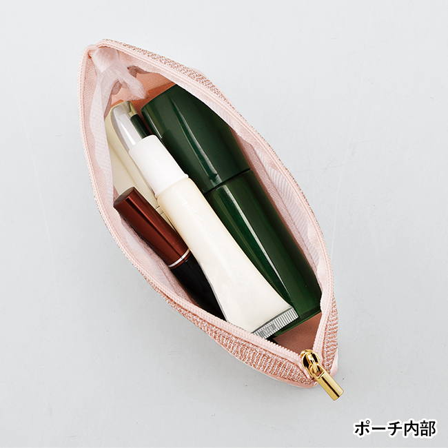 煌びやかなラメと上品なサテンを使用した「シャイニーナ・ラメスリムポーチ」は、お洒落心をくすぐるきらきらしたフラットポーチになります。華やかなデザインはバッグの中でも見つけやすく、スリム型なのでコンパクトなバッグへの収納もスムーズです。ウィンターコフレのノベルティやパーティーシーンの記念品には特にお薦め。ショップ名やロゴの名入れ印刷も、当店では格安価格にてオーダーメイド致します。