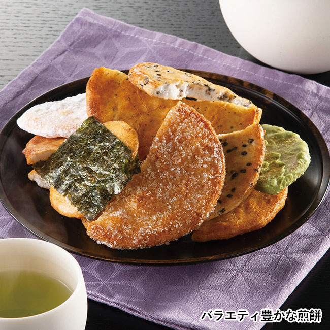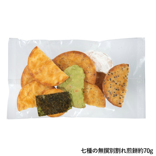 おいしくフードロス削減に貢献できるのが、「七福神物語幸せの割れ煎餅」形の違う無選別のお煎餅が7種類入っていて、割れ煎餅のロスを防ぎながらバラエティ豊かな味わいが楽しめます。七福神が描かれた縁起の良いパッケージには、シニア層に手に取っていただきやすいデザイン。大ロット発注もお手頃価格でオーダーできますので、商店街のキャンペーン景品や食料品店の購入ノベルティとしていかがでしょうか。