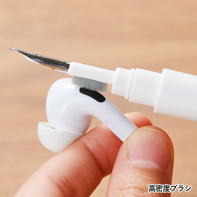 ブラシ、高密度ブラシ、スポンジ、ペン先、キートップ引き抜き具の充実のクリーニングツールをブラシにセットした「5in1 PC&イヤホンクリーナー」です。キーボードやイヤホンの細かい汚れを落とし、PC作業を快適にします。ガジェットアイテムと相性の良い商品ですので、タブレットやキーボードの購入特典ノベルティ、スマホショップの来店記念品にお薦めです。ブラシの持ち手には、企業名やイベント名の名入れプリントを当店ならではの格安価格にて承ります。