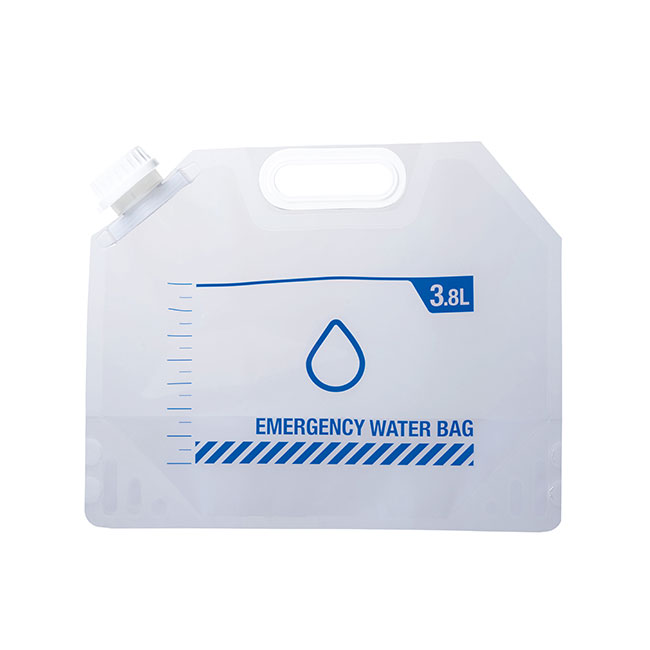 「ウォーターバッグ3.8L」は、断水時の給水やアウトドアシーンでの水汲みに役立つウォーターバッグです。約3.8Lのお水を確保できるため、もしもの時に備えたストック用にも重宝します。お水の使用量がわかるように、バッグに目盛りが印刷されているのもポイント。持ち手が付いているため、持ち運びもスムーズで非常時に便利です。本体には、社名や団体名などを格安価格にてプリント致します。防災教室の参加ノベルティやキャンプグッズの購入特典などにご検討下さいませ。