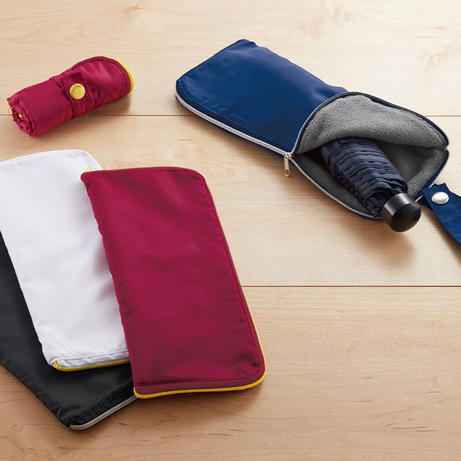 マイクロファイバー仕様である為、折り畳み傘が濡れていても傘の水分をしっかり吸収できるマルチ傘カバー。黒・ネイビー・赤・白の四色を取揃え、男女問わずご利用可能です。低価格なお値段で製作出来き、企業名を入れて展示会でのバラマキ景品やブランドマークを入れて購入者特典等にご活用する事で、企業の認知度アップを図る販促商材です。