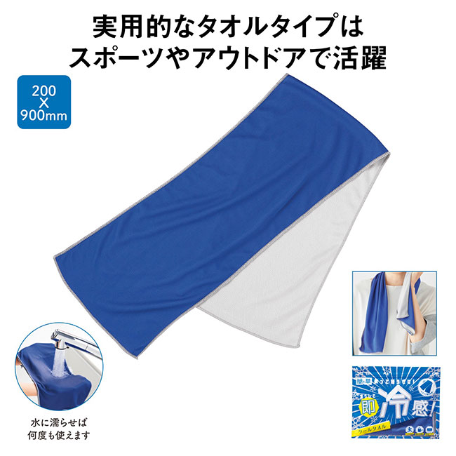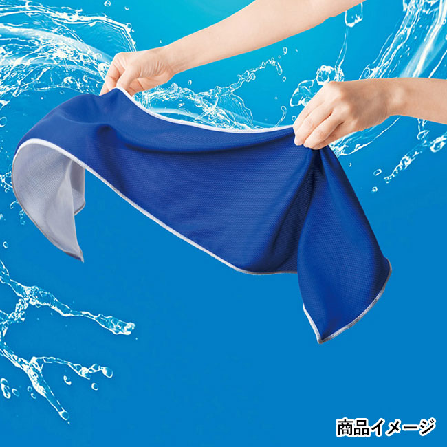 首に掛けて使える長さなので、スポーツやアウトドアでも使いやすい「濡らして即冷感!クールタオル」。水で濡らして絞り、振るだけで簡単に冷却できるお手軽なクールアイテムです。水に濡らせば何度も使えるので長期的に活躍します。デザイン袋入りなので配布しやすく、スポーツ大会やアウトドアイベントの参加ノベルティにお薦め。格安価格で大ロット発注も承りますので、ぜひ当ノベルティ・ギフトモールをご活用ください。