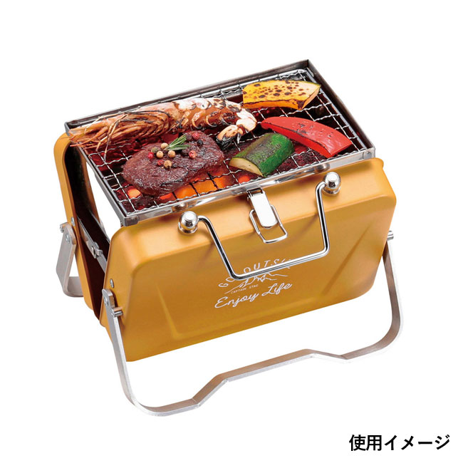 「キャプテンスタッグモンテ V型卓上グリル」は、トランク型に収納できるコンパクトサイズの卓上グリル。バーベキュー網などもセットになっており、これ一台でキャンプに大活躍します。アウトドアに馴染むカラーとトランク型のかわいいデザインも魅力的。アウトドア店舗のキャンペーン景品や記念品、抽選会の景品などにぜひご活用ください。通販だからこそ可能な激安の値段で販売しております。