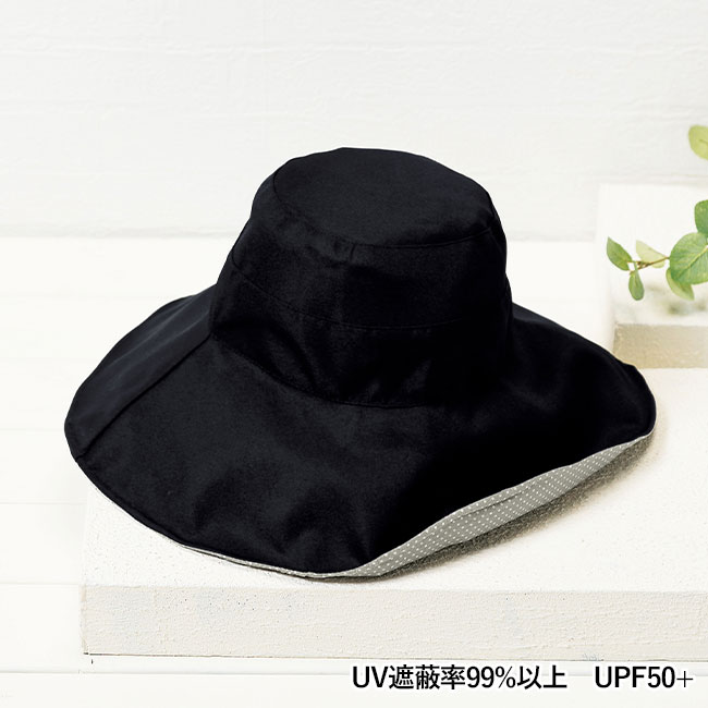 紫外線対策にピッタリの「モナート/UVケアハット」。つば広タイプで、顔を紫外線からしっかりガードしてくれます。ツバ先にワイヤーが入っているので形が崩れにくいですし、UV遮蔽率は99%以上と機能性も高いアイテムとなっております。内側はかわいいドット柄で、洋服店での販売アイテムとしても魅力的ですし、通販サイトのプレミアムノベルティとしての作成もお薦めです。是非紫外線対策のノベルティとして、ご発注下さいませ。