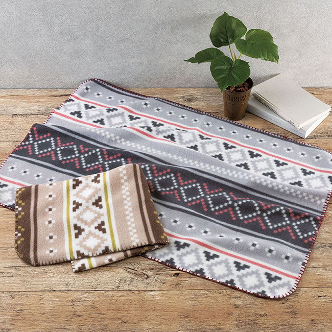 「トリッカ/フリースブランケット」はフェアアイル柄の可愛らしいフリースブランケットです。フリース素材で温かいかつ軽いので、気軽にご利用出来ます。かさばらず持ち運びにも便利ですので、お家だけでなく車内やオフィスでの使用にもお薦めです。冬の屋外イベントでの来場記念品としても、カフェ等でのノベルティとしてもお薦めです。激安価格での製作が出来ますので、是非ご注文下さいませ。