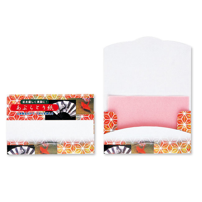 肌を優しく清潔にしてくれる「あぶらとり紙」は、桃色の紙が女性らしい可愛いコスメグッズとなり、商品のベタ付けや大量にばらまく際のノベルティとして重宝します。中央にある白地部分にショップネームやイベントなどの名入れがプリント可能となっており、豪華な和柄の中でも文字が目立ち記憶に残ります。