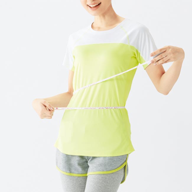 150cmのメジャーに標準体重とBMI値の算出、ウエスト平均値、おやつカロリーチェック等が記載されたウェルネスグッズ。健康に気を配るオリジナルプリントのノベルティとして激安の販促品に。
