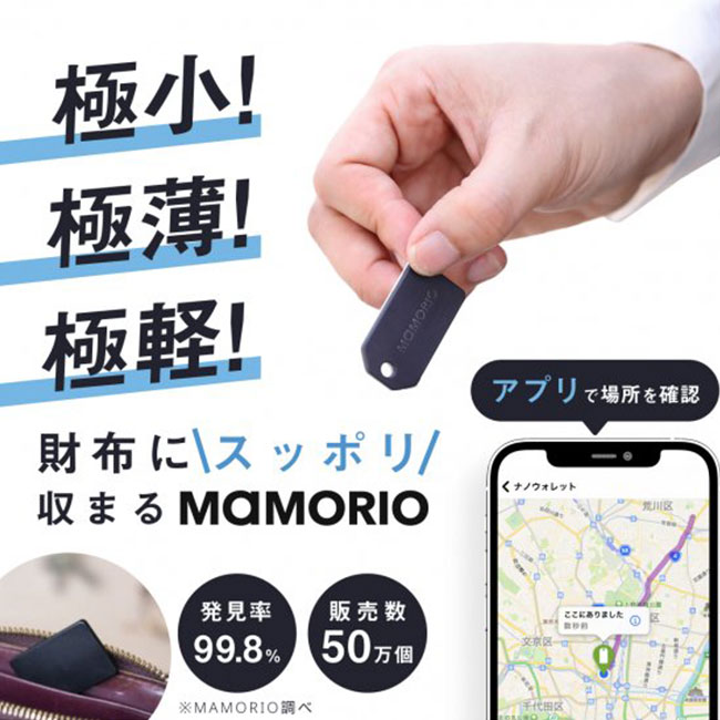 「世界最薄・最小クラスの紛失防止タグ」のMAMORIO。スマートフォンと連携して鍵、財布、自転車などMAMORIOがついている物が最後にあった時間と場所をアプリから確認が出来る防犯グッズ。そして、一定距離を離れるとスマートフォンに通知し置き忘れを防止!そして、もし紛失してしまった際には別ユーザーやMAMORIO SPOTに近づいた際に通知が届く優れもの。防犯関連のプレミアムノベルティや記念品にいかがでしょうか?裏面にフルカラー名入れも激安価格で対応いたします。