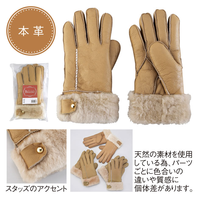 ベルノ・本革ムートングローブ(sd205052)天然の素材を使用しているため、パーツごとに個体差があります