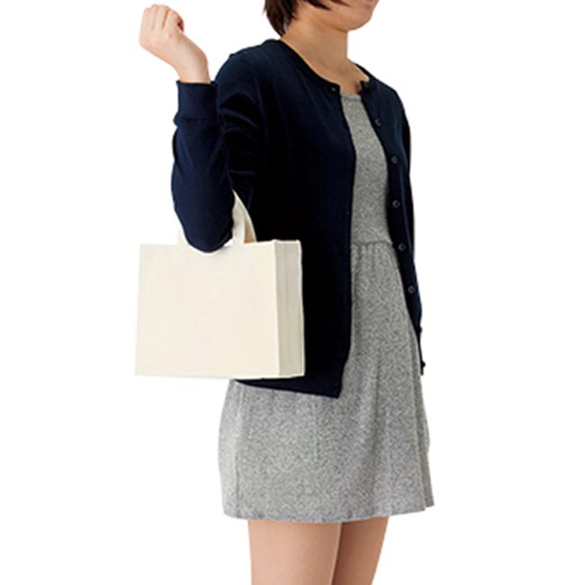ランチボックスを入れるのに丁度良いサイズの「ユーティリティバッグ(S)ワイド」は名入れの映えるシンプルさが魅力的となりナチュラルからシックなカラーのワインレッドやネイビーブルーなど全6色の中からオリジナルトートバッグ作成にご活用頂けます。レディース向けノベルティとして人気がありますのでアパレル店舗の販促ノベルティやコスメイベントでサンプルと一緒にお渡しする来場特典などに最適となり、ブランドの認知度を上げたり購買意欲を高めます。