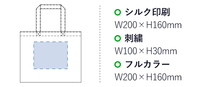 キャンバスカレッジトート(ML)ワイド(tTR-0903)名入れ画像 プリント範囲 シルク印刷・フルカラーw200×h160mm 刺繍w100×h30mm