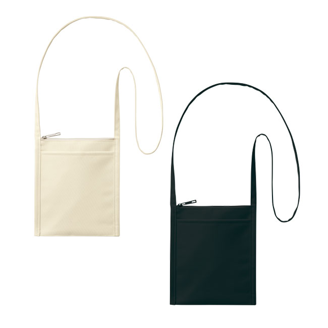 アウトドアや旅行の際に使い勝手のいいミニサイズ。丈夫なポリエステル素材で水にも強く安心です。正面に名入れが可能で、ミルキーベージュとインクブラックのシンプルな2色は激安の単色印刷でもきれいに映えます。格安のノベルティにぜひご活用ください。