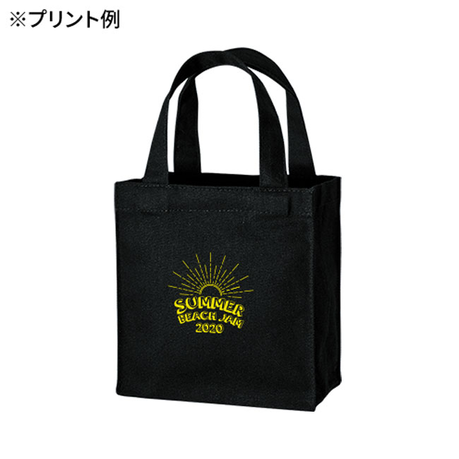 折りたたみ財布とスマホが入るサイズの「キャンバススクエアトート(XS)」。10オンスのキャンバス生地を使っているので小さめサイズでもしっかり丈夫で、お散歩バッグとしても使えます。店舗のサンプル品お渡しバッグなどにもお薦め。激安の1色印刷からフルカラープリントまで承っておりますので、店舗ロゴやイラスト入りの特注製作をご活用ください。本体カラーがシンプルなので、自由度の高いオリジナルノベルティをご注文頂けます。