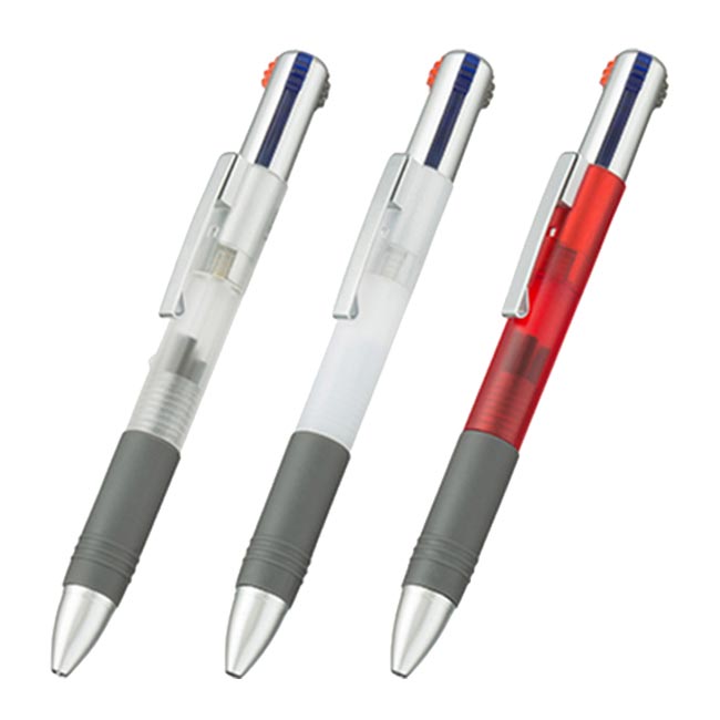 スッキリとしたデザインで作成されている3色タイプのボールペンになります。幅広いシーンで活躍するアイテムですので、社名入れなどを激安な価格で施せば、汎用性の高いオリジナルノベルティグッズとしての大量ロットの製作も可能となっています。