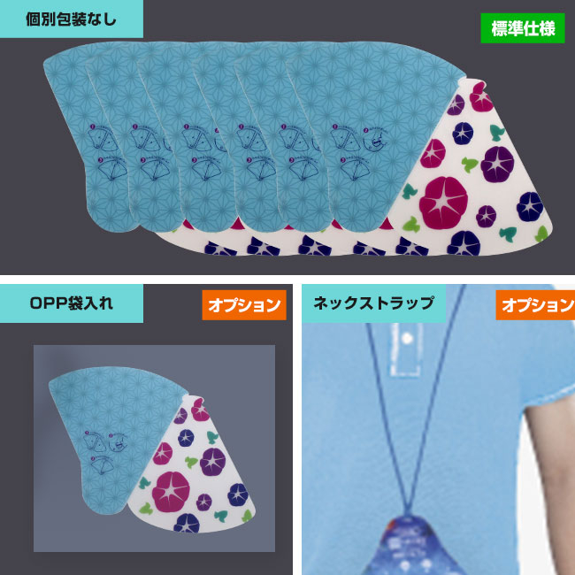 広いプリント面を生かして夏を彷彿させるデザインや涼しみあるデザインをプリントする事で販促力高い使ってもらえるオーダーメイドノベルティとして大活躍です!オリジナルPP扇子は、フルカラー印刷にてデザインを再現いたします。