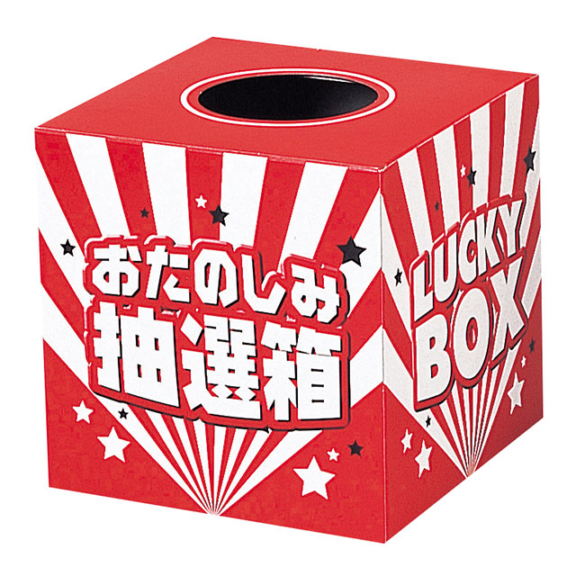 一辺20cmのサイズで作成されている抽選箱になります。シンプルでわかりやすいデザインでプリント印刷されており、多くのキャンペーンやイベントなどの会場にも置いておきやすいアイテムになっています。商品やノベルティなどを、ゲームで楽しみながら配布することができ、値段も激安に購入することが可能となっています。