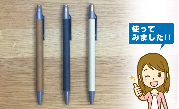 今回は、コーヒー殻繊維を配合した環境配慮型ボールペンの「エコカフェボールペン(SNS-0400129)」を実際に使ってみました!